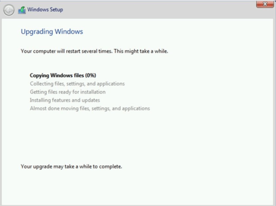 In-Place Upgrade (Yerinde yükseltme) için “Upgrade: Install Windows and keep files, settings, and applications” seçeneğini seçiyoruz.