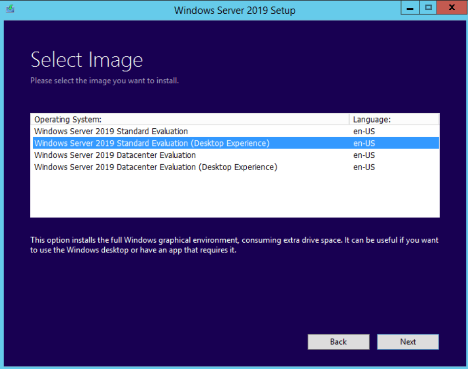 Microsoft Windows Server 2019 için kurulum medyasını takın ve setup.exe dosyasını çalıştırın.