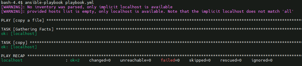 Şimdi de ad-hoc ile yaptığımız kopyalama işlemini playbook oluşturarak yapalım.