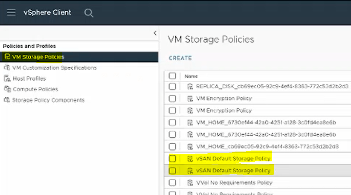 vSAN’da storage policy base management imkanı vardır. İsterseniz varsayılan politikaları kullanır, isterseniz de ihtiyacınıza göre politika oluşturabilirsiniz. vSAN’ın defaultta bir policysi bulunur.