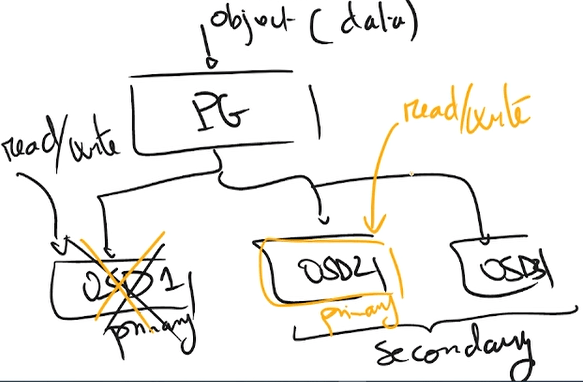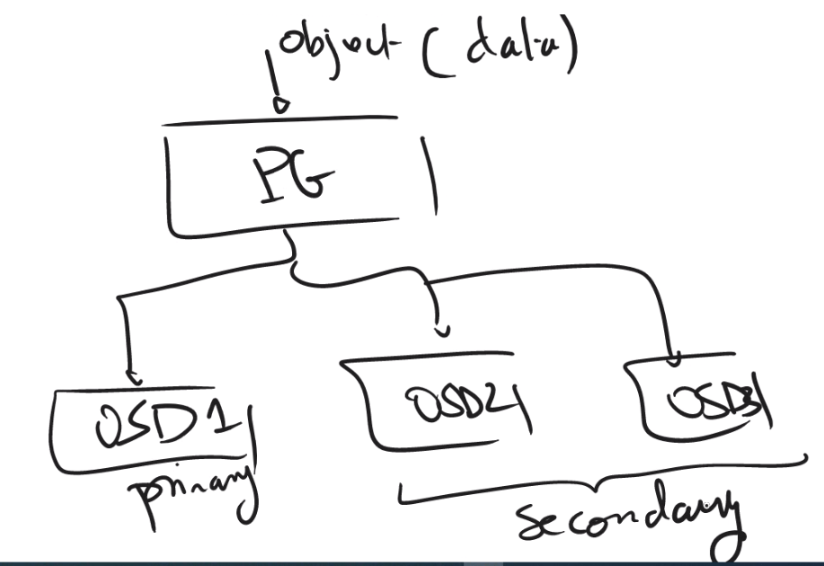 CRUSH, her nesneyi tek bir karma kova (single hash bucket) olan yerleşim grubuna (PG) atar. PG’ler, nesneler (uygulama katmanı) ve OSD’ler (fiziksel katman) arasında bir soyutlama katmanıdır. CRUSH, nesneleri PG’ler arasında dağıtmak için sözde rastgele bir yerleştirme algoritması kullanır ve PG’lerin OSD’lere eşlenmesini belirlemek için kurallar kullanır. Primary OSD’ye read/write işlemleri yapılır. Arıza durumunda ise Ceph, PG’leri farklı fiziksel cihazlara ( Secondary OSDs) yeniden eşler ve içeriklerini yapılandırılmış veri koruma kurallarına uyacak şekilde senkronize eder.