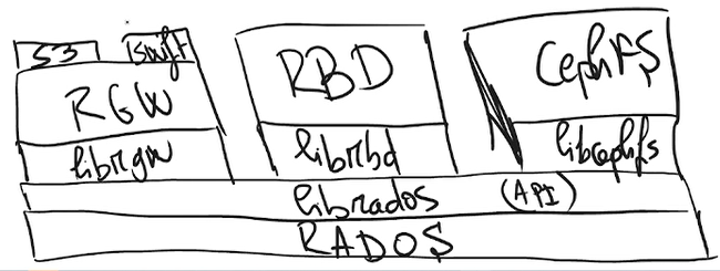 Çok kısaca genel yapıya baktığımızda RADOS altyapıda storage yazma işleminden sorumludur. RGW(Rados Gateway), RBD(Rados Block Device), CephFS(File System) ise bizim için clientlar ile haberleşmeyi sağlayan metodlardır.